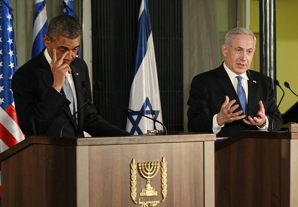 Barack Obama in a press conference with Benjamin Netanyahu in Jerusalem. Photo credit: REUTERS/Jason Reed