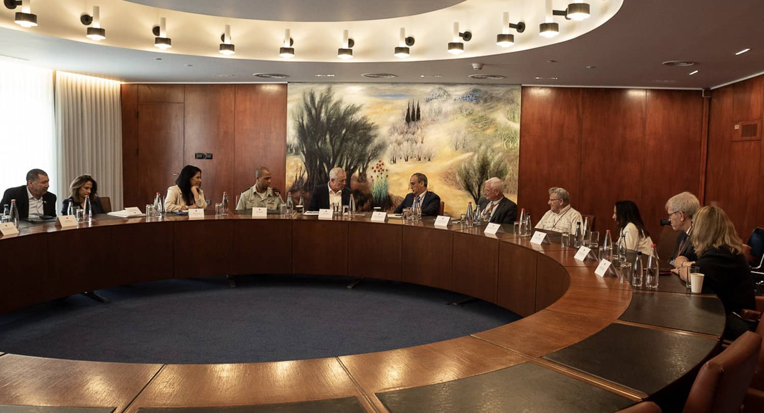 “We have a parliamentary majority of minus two,” joked Defense Minister Gantz at the start of his meeting with Charai and the JST team on June 20, hours before Israel’s coalition government announced plans for dissolution and new elections. Nevertheless, the current government will likely remain in place through new elections in the fall. Gantz presented to the JST team the upcoming visit of President Biden to the region. Also attending the meeting were Minister of Science and Technology Orit Farkash-Cohen and Members of Knesset Ruth Wasserman-Landau, Mufid Moraie, and Alon Tal.